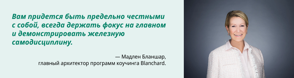 Однако знать и делать — две разные вещи. Именно поэтому Мадлен выделяет третье важное условие успеха лидера-коуча.